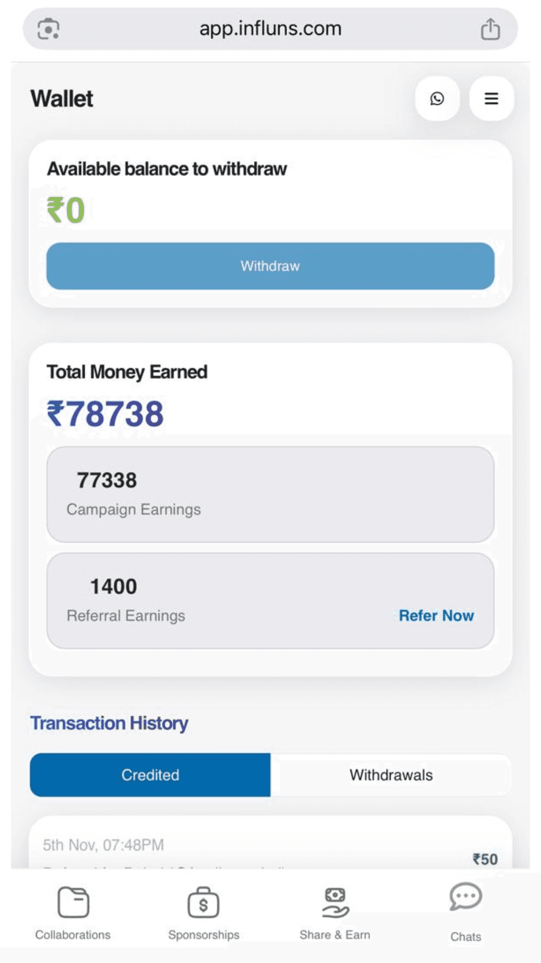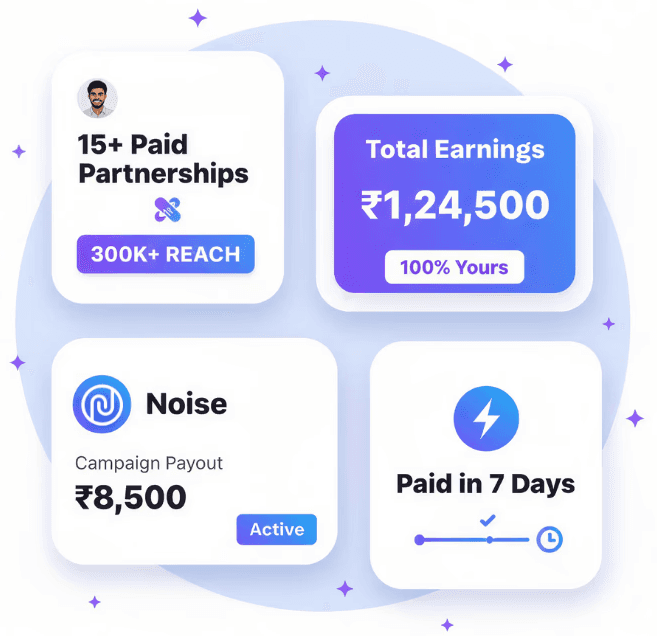 Join 1,00,000+ creators earning through Influns - the influencer marketing platform built for nano & micro creators. Get paid on time, with 100% of your earnings.